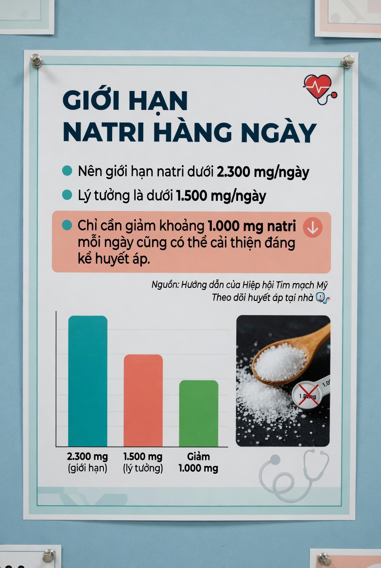 Chỉ cần giảm khoảng 1.000 mg natri mỗi ngày cũng có thể cải thiện đáng kể huyết áp.
