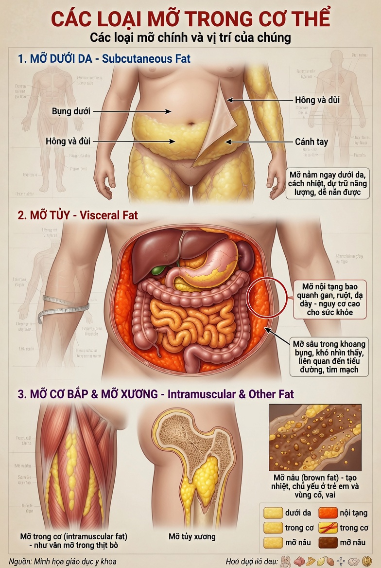 Trong cơ thể con người tồn tại hai loại mô mỡ chính: mỡ trắng và mỡ nâu. Trong khi mỡ trắng chủ yếu lưu trữ năng lượng và liên quan đến béo phì, mỡ nâu lại có khả năng đốt năng lượng để tạo nhiệt – một quá trình gọi là sinh nhiệt (thermogenesis).