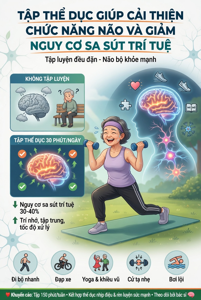 Tập thể dục giúp cải thiện chức năng não và giảm nguy cơ sa sút trí tuệ