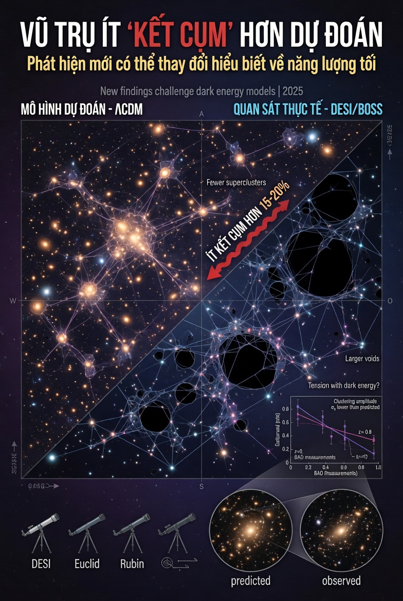 Vũ trụ ít “kết cụm” hơn dự đoán: Phát hiện mới có thể thay đổi hiểu biết về năng lượng tối